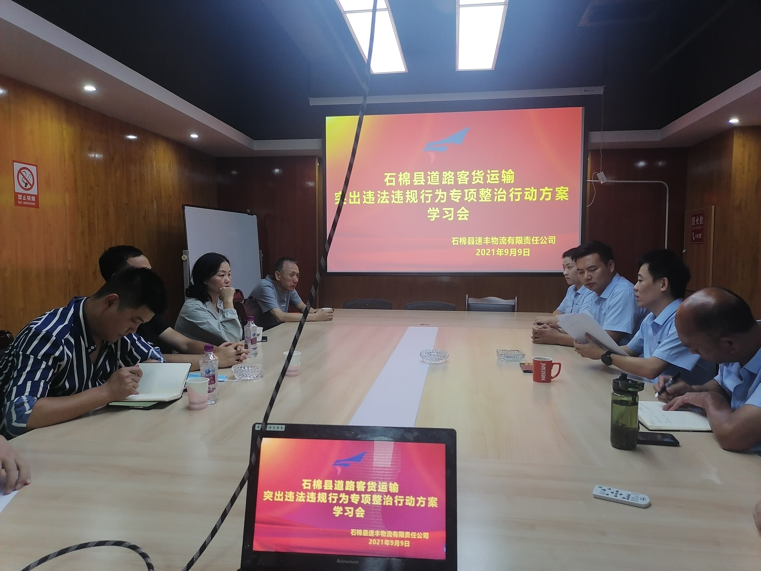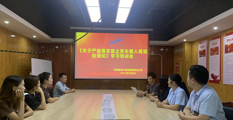 2021年9月9日石棉縣速豐物流有限責(zé)任公司組織相關(guān)業(yè)務(wù)合作物流企業(yè)共同開(kāi)展了關(guān)于道路運(yùn)輸警示教育宣傳、石棉縣道路客貨運(yùn)輸突出違法違規(guī)行為專(zhuān)項(xiàng)整治行動(dòng)方案、四川省交通運(yùn)輸廳關(guān)于嚴(yán)格落實(shí)禁止貨車(chē)載人規(guī)定的學(xué)習(xí)。